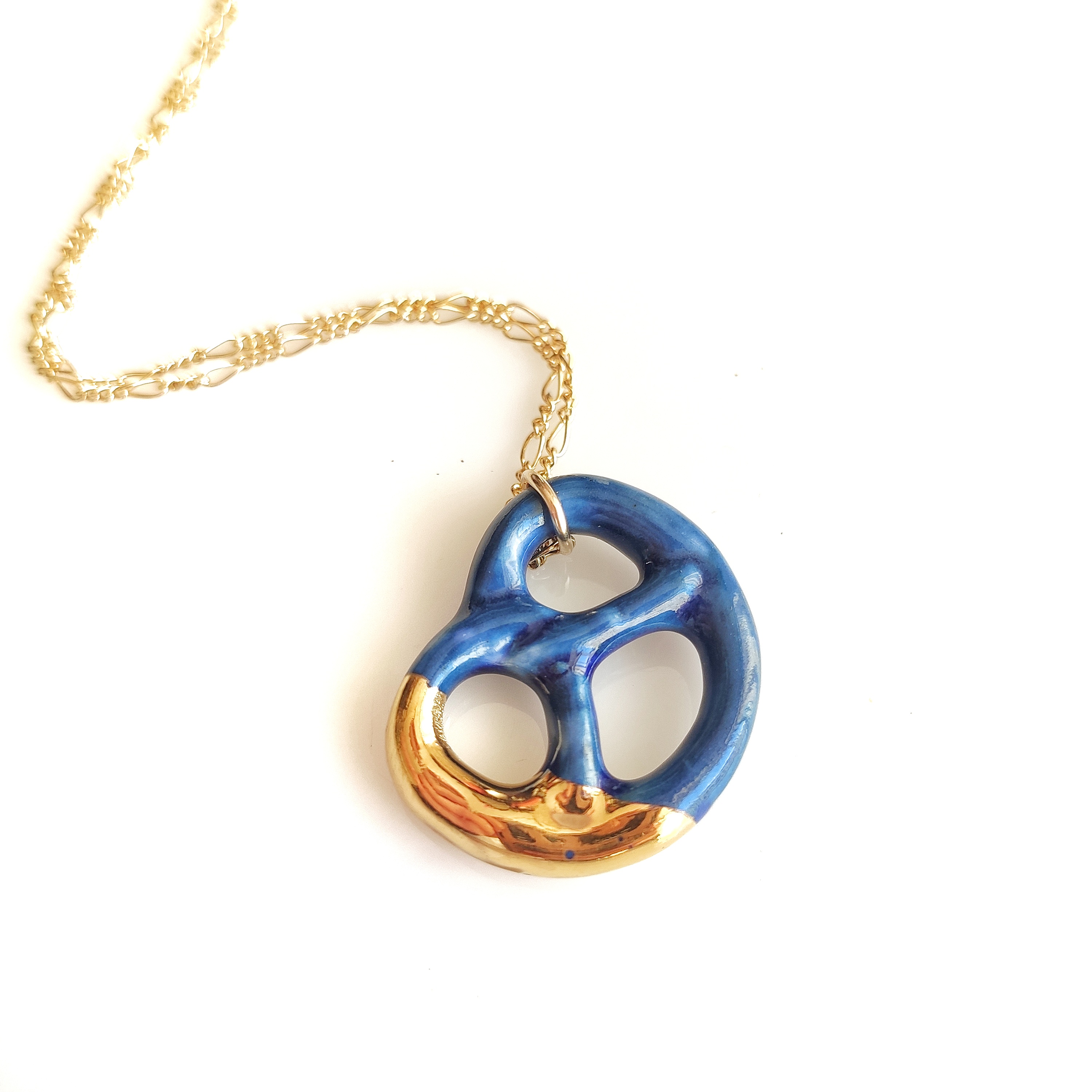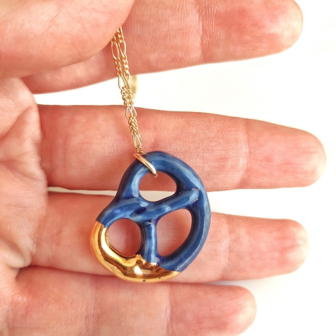 Denim jeans Porcelain pretzel necklace with gold